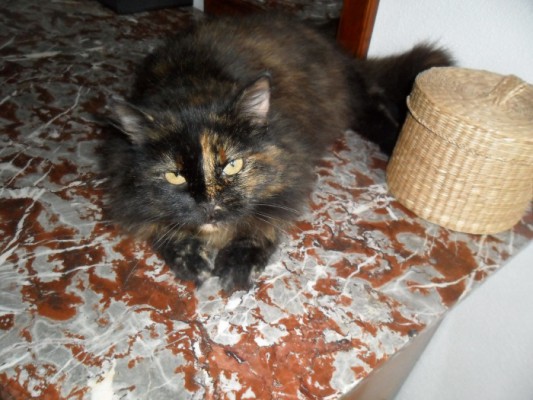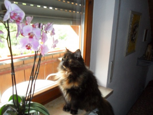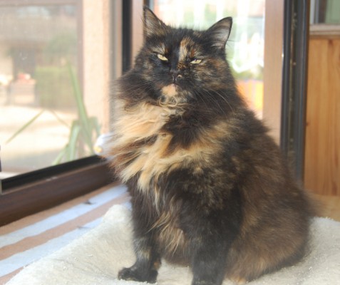 Venus, eine Schönheit in „Schildpatt Langhaar“. Geboren ist Venus im Februar 2011. Venus mag keine anderen Katzen oder Hunde. Sie hätte gerne einen Einzelplatz. Venus ist verschmust und mag sehr gerne am Fenster sitzen und alles beobachten.