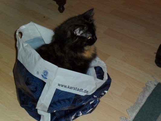 „Minou hat inzwischen die Wohnung „erobert“ und fühlt sich offensichtlich wohl. Wir haben keine Probleme miteinander und jeden Tag fasst Minou mehr Zutrauen. Ein paar Fotos von dem „Wuschelkopf“, der sich mit Belohnung auch bürsten lässt, aber noch nicht am Bauch….“
