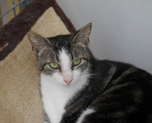 Auch Belle sitzt immer noch im Tierheim. Sie ist noch schüchtern, hat aber schon große Fortschritte gemacht. Sie lässt sich anfassen, ist dabei aber nicht entspannt, sondern duckt sich weg oder geht davon. Sie reagiert aber nie aggressiv. Belle sucht ein Zuhause mit Artgenossen. Wer kann ihr diesen Wunsch erfüllen?