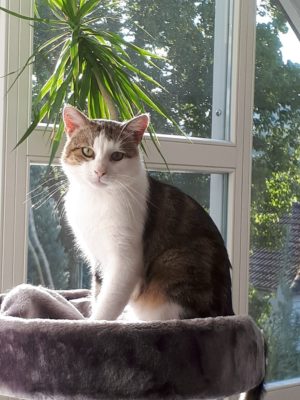 Geht schon raus, kommt zuverlässig zurück. Kommt ins Bett und auf den Schoss….er war vom ersten Moment zu Hause und sehr verträglich mit den beiden anderen.