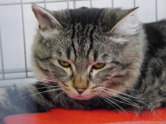 „Jetzt bin ich an der Reihe. Tati ist mein Name und ich bin ein hübscher Kater mit halblangem Fell. Ich bin ruhig und auch sehr lieb und kann nicht verstehen, wieso ich hier sitze. Komm mich bitte abholen, gerne zu anderen jungen Katzen.“