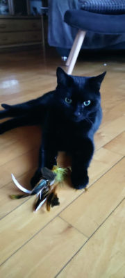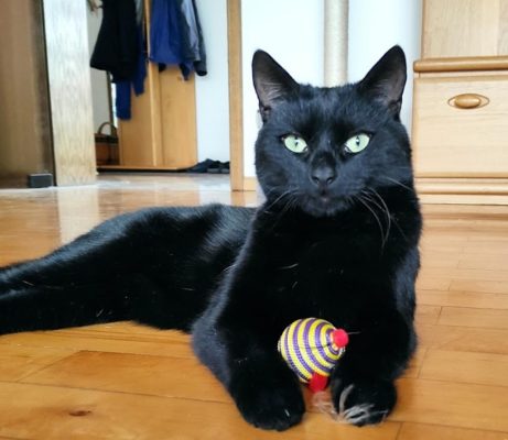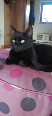 Sofort wollte er gestreichelt werden und hat sich auf den Schoß gelegt.