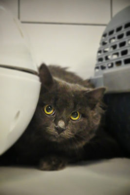 Griselda wurde mit weiteren zwanzig Katzen aus ihrem Zuhause abgeholt, da die Besitzern die Katzenhaltung aus dem Ruder gelaufen ist. Wen wundert es, die meisten der Katzen waren nicht kastriert. Griselda ist noch schüchtern und auch eingeschüchtert von der neuen Umgebung.