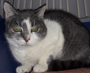 Sie ist eine zierliche ängstliche und verträgliche Kätzin. Sie lässt sich kraulen am Köpfchen.