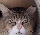 Mimi ist beim ersten Kennenlernen eher zurückhaltend. Streicheln lässt er sich aber. Auch zu seinen Artgenossen sucht er keinen Kontakt, da zieht er sich eher zurück.