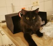 Ist man im Zimmer ist Salem zur Stelle, er kommt sofort um zu schauen was man dabei hat und drückt seinen hübschen Kopf gegen einen.
