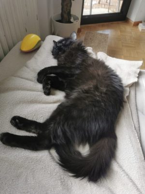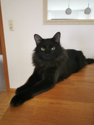Ist man im Zimmer ist Salem zur Stelle, er kommt sofort um zu schauen was man dabei hat und drückt seinen hübschen Kopf gegen einen.