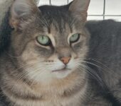 Der hübsche Grautiger Oggy ist noch ein wenig schüchtern.