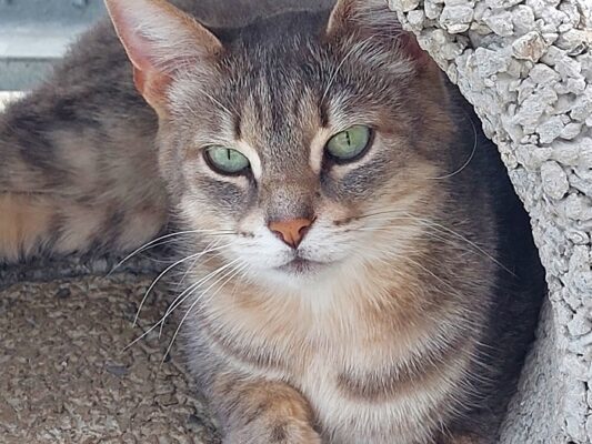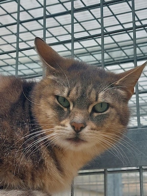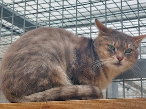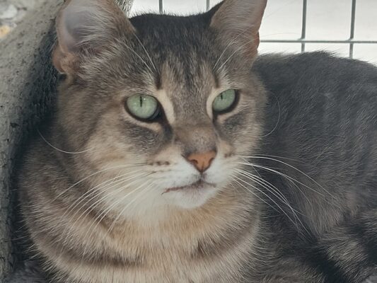 Der hübsche Grautiger Oggy ist noch ein wenig schüchtern.