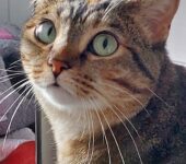 Die erste Woche war kein Rankommen an sie, sie hat gefaucht und geschlagen und sich nur versteckt. Inzwischen lässt sie sich von einer Mitarbeiterin schon gerne streicheln und auch wir durften sie streicheln, da war sie aber noch vorsichtig. Gesucht wird ein ruhiges Zuhause.