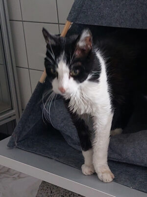 Andy war schon längere Zeit auf sich alleine gestellt, klapperdürr kam er im Tierheim an. Er hat uns sofort freundlich begrüßt, ist um die Beine gestrichen und hat sich ausgiebig streicheln lassen.