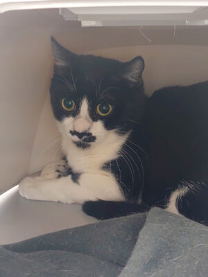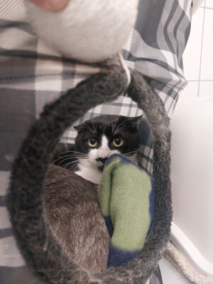 Ankou wurde mit weiteren Katzen beschlagnahmt. Sie mussten im Dreck leben, gekümmert wurde sich nicht. Ankou kennt keine menschliche Zuwendung und ist dementsprechend ängstlich.
