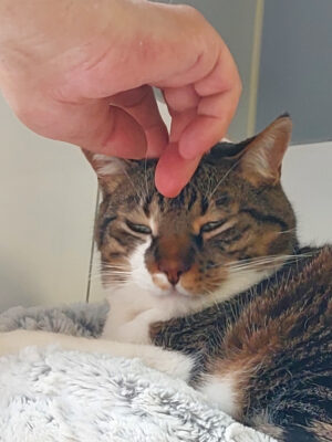 Bayu ist ein großer und ein wenig übergewichtiger Kater. Er begrüßt einen direkt freundlich und lässt sich gerne streicheln.  Ist es ihm genug zeigt er es , entweder er geht weg oder schlägt gegen die Hand.