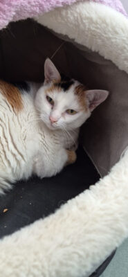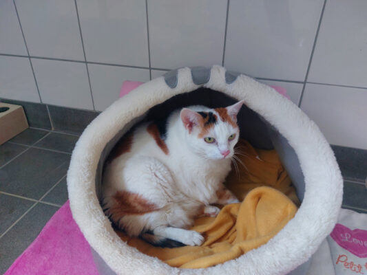 Canneloni kam ins Tierheim, da sich ihre betagte Halterin nicht mehr um die Kätzin kümmern konnte. Canneloni ist eine ruhige Katze, die sich gerne streicheln lässt. Sie zeigt aber, wann sie genug hat. Canneloni ist viel zu dick und müsste dringend Gewicht reduzieren.