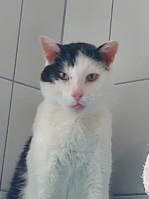 Domino wurde abgegeben, da er nicht mehr fressen würde. Er hatte einen sehr großen Abszess im Maul und musste lange behandelt werden. Seine ehemaligen Halter haben ihm keinem Tierarzt vorgestellt, obwohl sein Zustand alarmierend war.