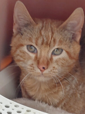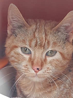Monreux ist ein junger, noch schüchterner Kater. Wenn man jedoch langsam und ruhig auf ihn zugeht, lässt er sich anfassen.