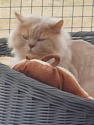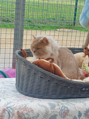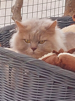 Ninou wurde abgegeben, da man kein Interesse mehr an ihm hat. Er kommt direkt auf einen zu, hat keine Berührungsängste und lässt sich auch ausgiebig streicheln. Aber, Ninou hat auch Charakter. Wenn es ihm zu viel wird, faucht er und schlägt auch zu.
