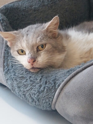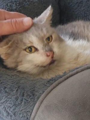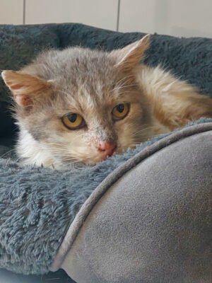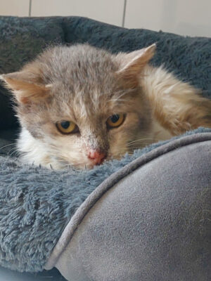 Otis wurde in schlechtem Zustand aufgegriffen. Abgemagert, voller Flöhe und mit nur noch wenigen Zähnen. Otis ist ein ruhiger, sehr lieber Kater, der jede kleine Zuwendung genießt.