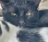 Vortex kam mit mehreren Katzen von einer Futterstelle, die nicht mehr betreut wurde. Die ersten Wochen ist er panisch geflüchtet, wenn wir das Zimmer betraten. Inzwischen bleibt er liegen, nimmt meist die Leckerchen aus der Hand und lässt sich auch schon mal vorsichtig anfassen.