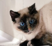 Cousette wurde mit zwei weiteren Katzen abgegeben, da man kein Interesse mehr habe. Die hübsche Kätzin ist eingeschüchtert und versteckt sich .