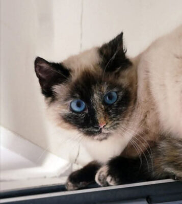 Cousette wurde mit zwei weiteren Katzen abgegeben, da man kein Interesse mehr habe. Die hübsche Kätzin ist eingeschüchtert und versteckt sich .