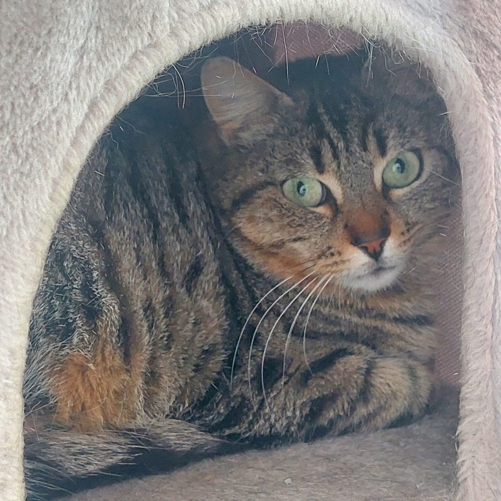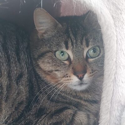 Nojiko ist noch sehr schüchtern und zieht sich zurück. Nimmt man sich Zeit, dann lässt sie sich aber durchaus streicheln und genießt es auch.