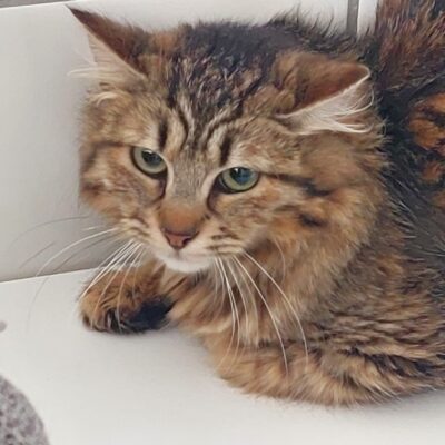 Petunia kam durch eine Kastrationsaktion ins Tierheim.  Sie ist noch ein wenig schüchtern, lässt sich aber streicheln.