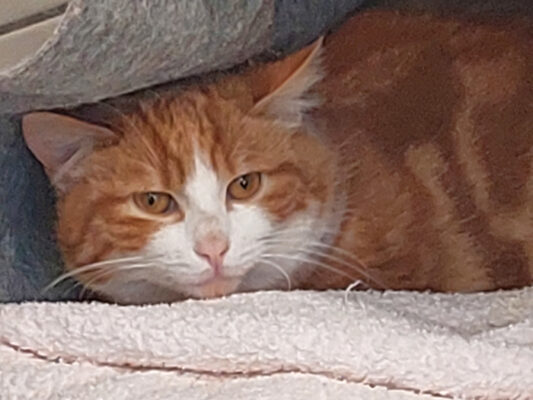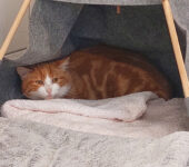 Robin versteckt sich meist, er hat noch Angst vor den Menschen und der ungewohnten Umgebung. Fühlt er sich bedrängt, wird gefaucht oder auch schon mal gegen die Hand geschlagen. Robin sucht ein verständnisvolles Zuhause, wo er in aller Ruhe ankommen darf.