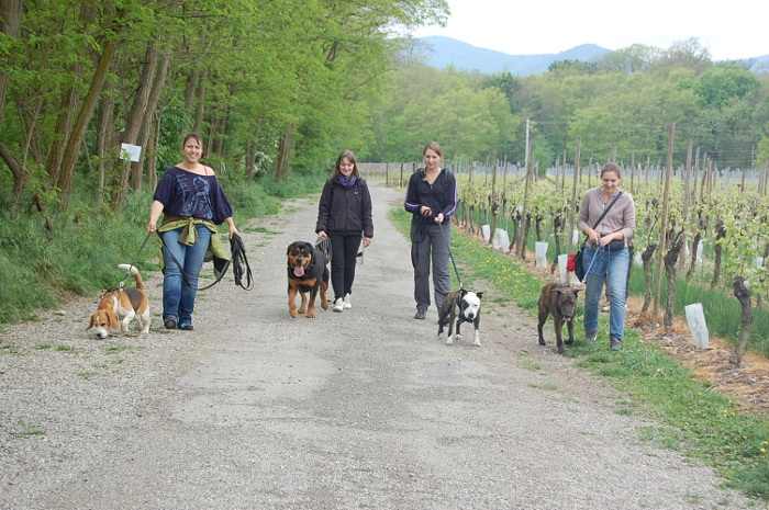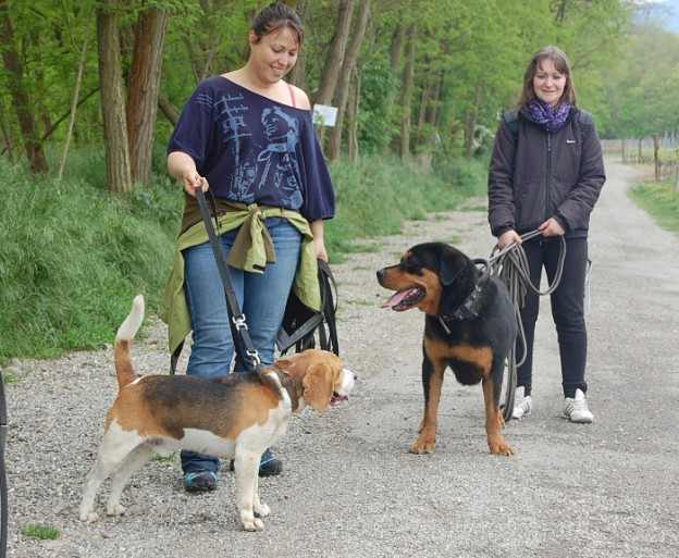 Il est calme en balade et ne tire pas. Il aime bien partager ses promenades avec d’autres chiens.
