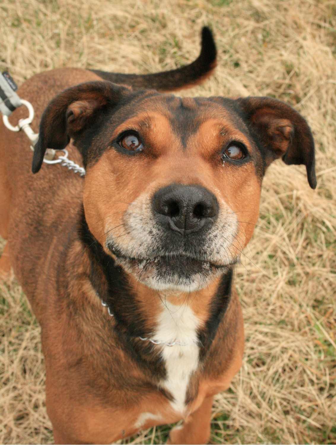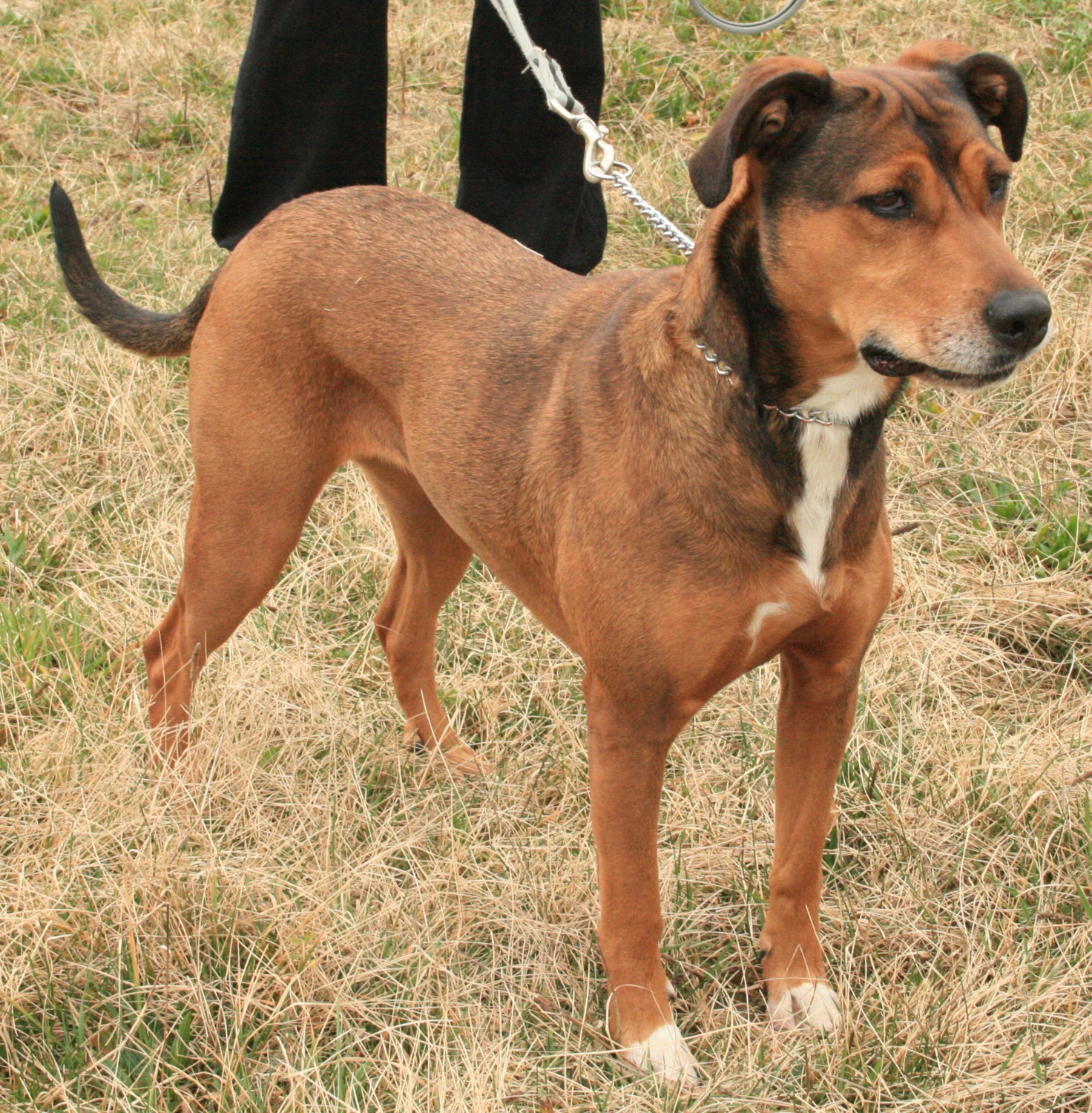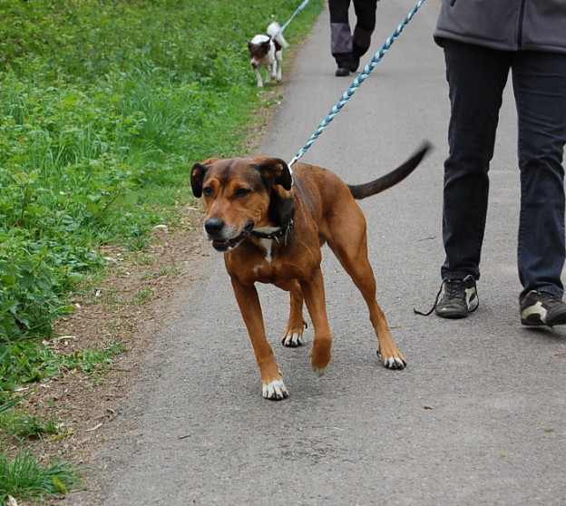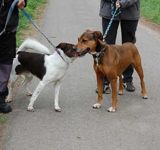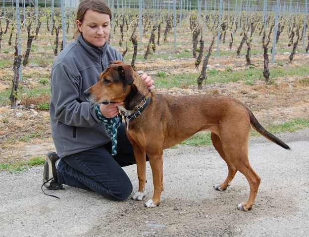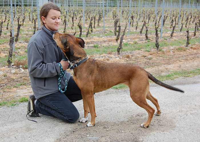 Athena est une chienne gentille et douce. Elle est agréable à promener et n’a pas l’air agressive avec les autres chiens.