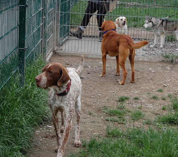 Il ne tire pas trop en ballade et aime se promener. Il va timidement à la rencontre des autres chiens.