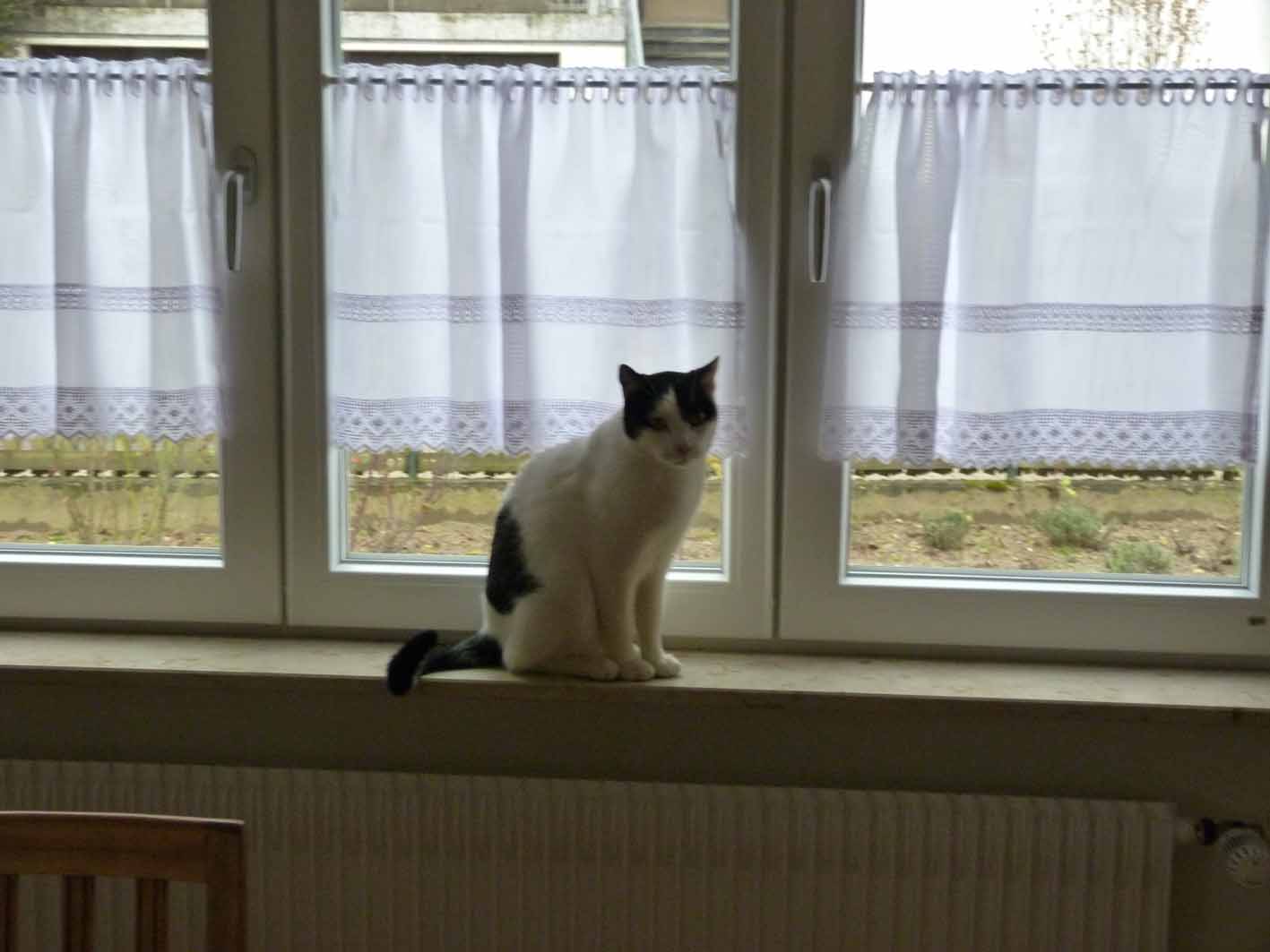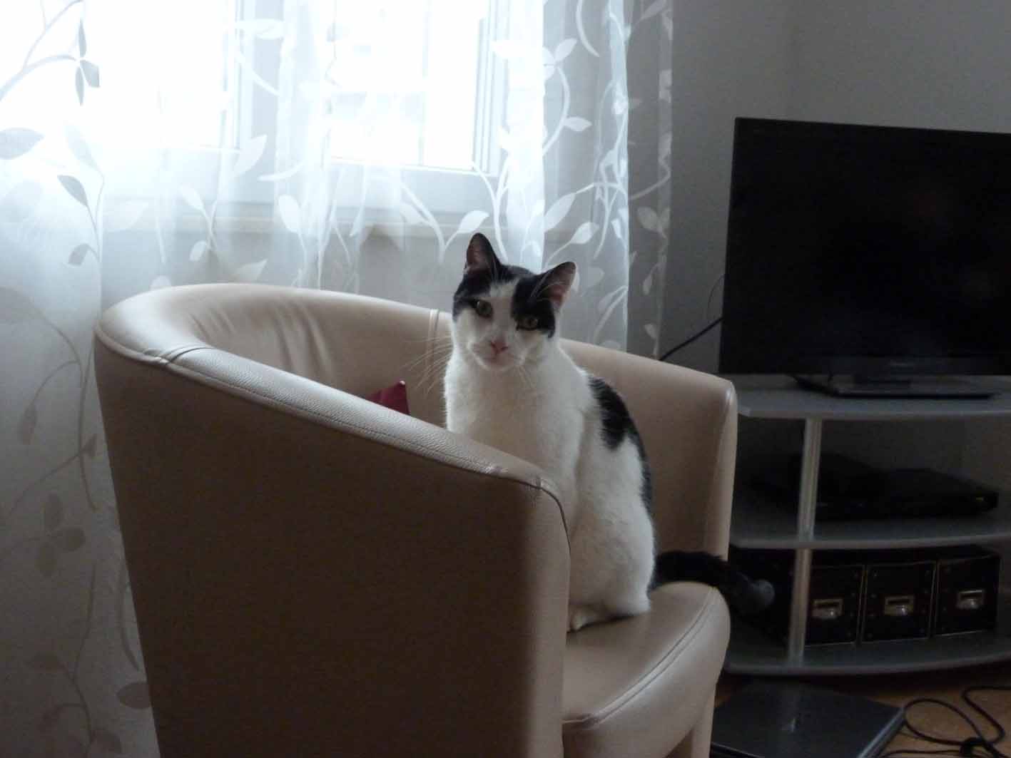 Je pense qu’il se sent très bien chez nous (par contre il trouve ça bête de ne pas pouvoir sortir, mais il faut juste qu’il patiente encore quelques semaines…). Ci-joint quelques photos de Davy dans son nouveau foyer.