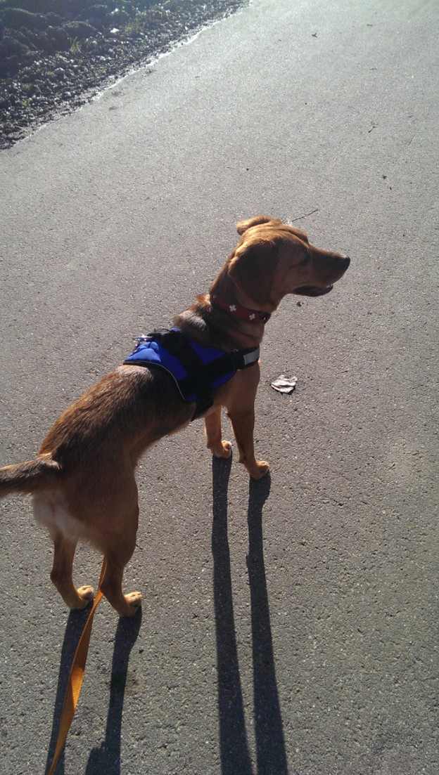 Le premier soir elle était pas mal anxieuse (sa vessie aussi), mais pas grave, ça peut arriver. Elle est très affectueuse et câline, lorsqu’on se lève du canapé elle nous suit et veut être partout avec. Le dimanche on est allés se promener dans les champs pendant 2 heures, elle a trotté comme un petit chevreuil, depuis nous l’avons surnommée comme ça.
