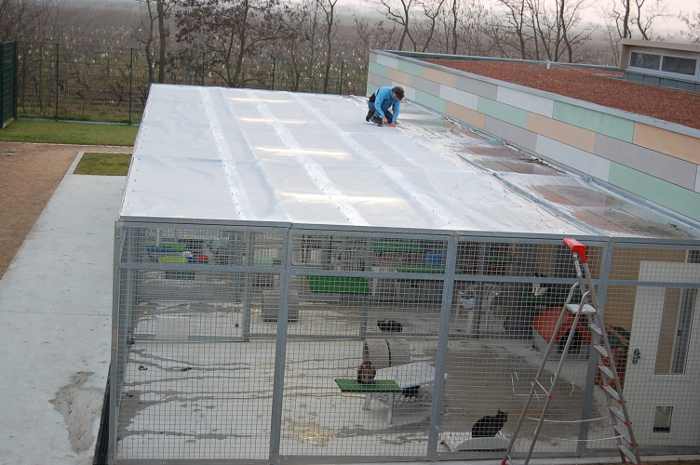 Un grand merci également aux messieurs qui se sont occupés du toit de l’espace extérieur de la chatterie, en réparant les plaques déjà présentes ainsi qu’en recouvrant la partie découverte par des plaques temporaires.