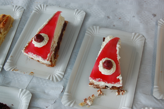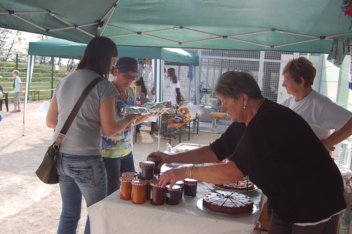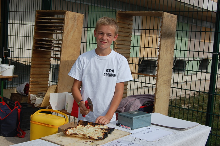 La tarte flambée sur feu de bois était délicieuse et tous les gâteaux se sont vendus rapidement. Il ne restait pas un seul morceau!