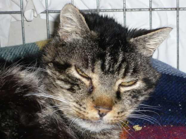 C’est un pauvre bonhomme. Il est vraiment plein d’amour, et recherche en permanence de l’affection. Qui a une petite place pour ce vieux matou esseulé?