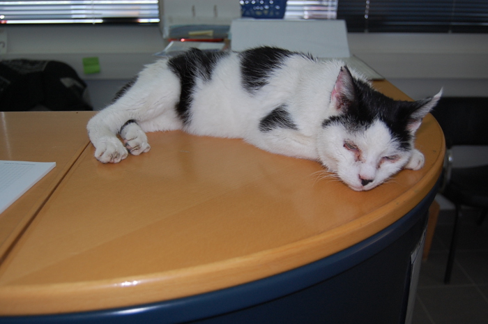 TomTom nous a quitté et il laisse un grand vide. Durant de nombreuses années, il était toujours présent lorsque nous venions au refuge mais maintenant nous avons du le laisser partir en raison de ses problèmes de santé. TomTom était le chef du SPA. Il était toujours là et il connaissait tout. Le soir, il dormait dans la salle de réunion et la journée il se promenait partout et cela lui plaisait beaucoup! Il avait une belle vie pour un chat de la SPA. Tous les jours, on lui portait beaucoup d’attention et on lui faisait beaucoup de calins. Dans la galerie photo>>> vous pouvez voir la vie qu’il menait dans le SPA.