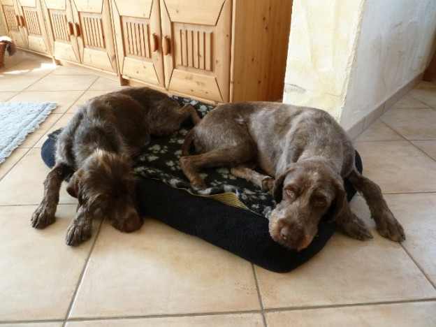 Mais sinon tout va bien avec les deux chiens. La période des chaleurs de Mandy s’est passée sans aucun problème. Son pelage a déjà un peu repoussé, et elle sera certainement très vite tout aussi belle que Goliath, avec tous les soins dont elle a droit !