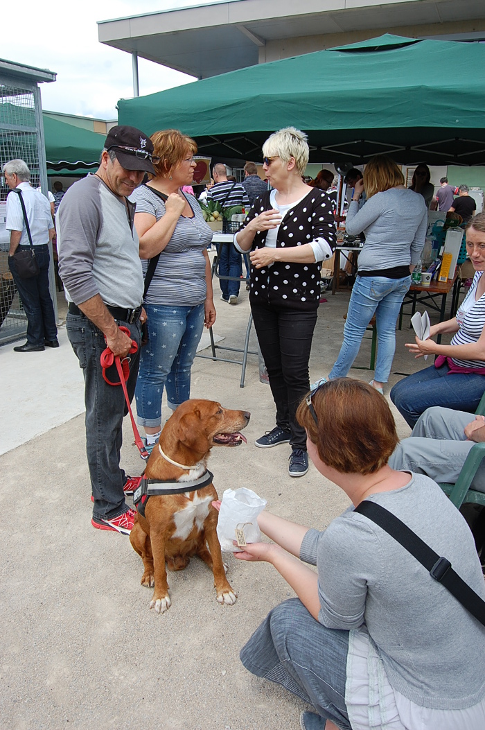 Beaucoup d’anciens pensionnaires sont passés au refuge le lundi de Pentecôte pour faire un petit coucou. Ça a fait surtout très plaisir au personnel et bénévoles du refuge. Avec le temps sec, les nombreux visiteurs, dons et potentiels adoptants ont fait de ce jour une réussite. Merci à tous ceux qui ont aidé, aux visiteurs et aux donateurs !!! Merci au magasin Leclerc pour les délicieux gâteaux. Merci à l’entreprise Carola pour l’eau minérale. Merci pour l’intérêt que vous nous portez, pour les dons de gâteaux et lots de tombola et pour votre soutien !