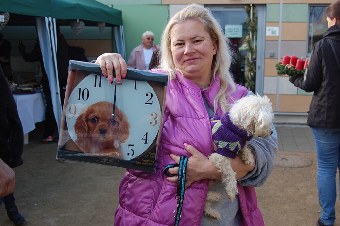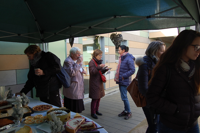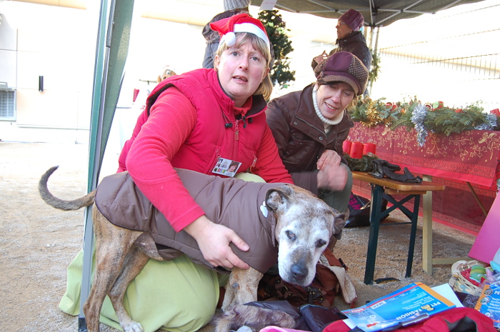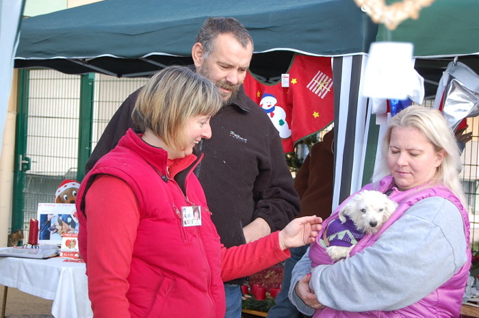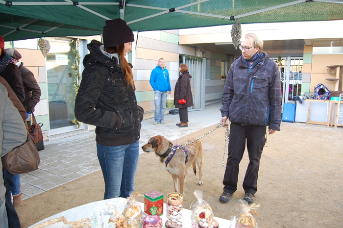 Beaucoup d’acheteurs intéressés par la manifestation et venus pour dépenser nous ont rendu visite lors de notre après-midi de l’Avent. Par un temps idéal, froid mais ensoleillé, quelques anciens pensionnaires nous ont fait un petit coucou. L’offre était grande : délicieuses pâtisseries et tartes Linz, belles couronnes de l’Avent, décorations de Noël, divers accessoires pour bipèdes et quadrupèdes. Et en avant-première la vente du calendrier 2016 du refuge avec des témoignages de pensionnaires adoptés.